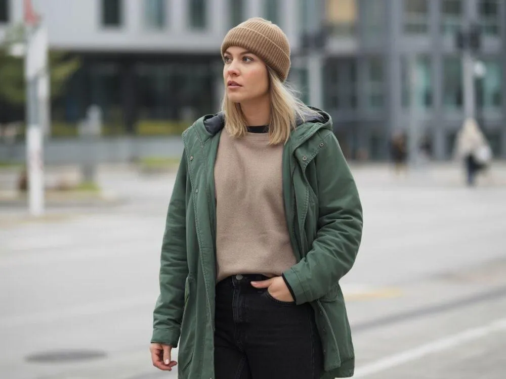 Od beżu po bordo oto jak dobrać idealną czapkę do zielonej kurtki.